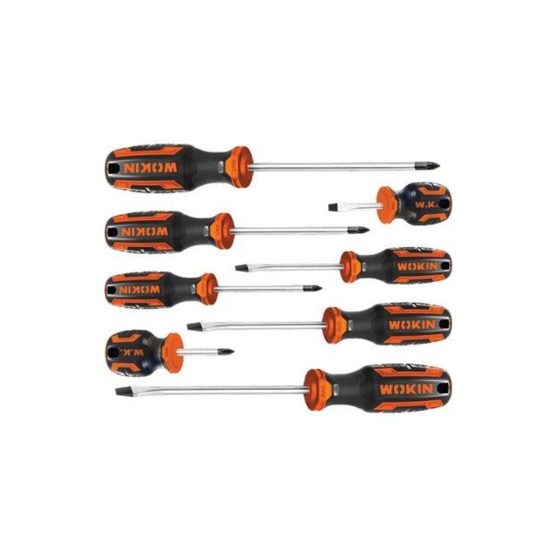 Giraviti serie 2008 wokin (2 confezioni) Ta 3/5,5/6.5 ph 0/1/2 pz 1/2 cf=pz 8 200808 in acciaio al cromo vanadio. punta magnetica con finitura nera. misure: taglio mm. 5,5×100 e 6,5×150, ph 1x100 e 2x150, pz 1x100 e 2x150. impugnatura bimateriale antiscivolo. in blister.
