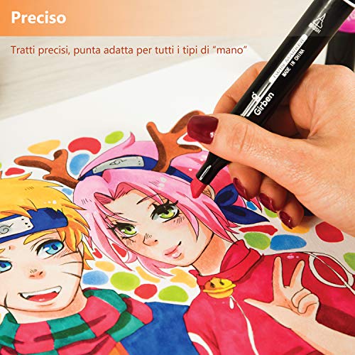 Girben Brush Pen Lettering e Blender - 40 Pennarelli Professionali da Disegno a Rapida Asciugatura