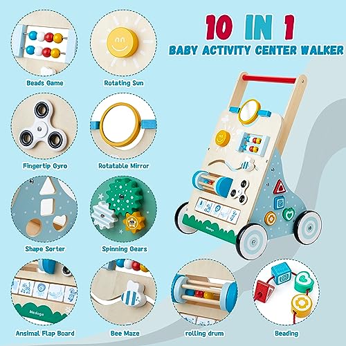 Girello in legno, 10 in 1 Baby Activity Center Push Walker regolabile, giocattolo per bambino, ragazzi (BW001)