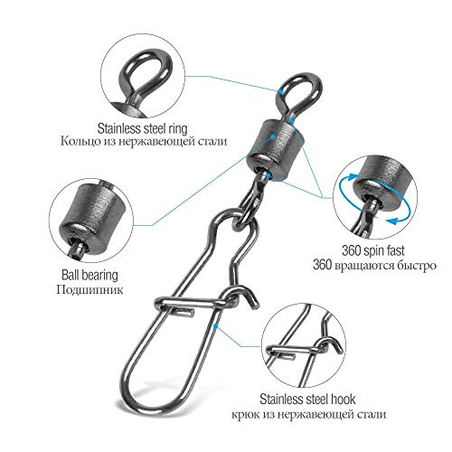 Rotazione e fibbia: la rotazione a 360° della parte rotante permette alla vostra esca di muoversi liberamente in acqua e impedisce alla lenza di piegarsi durante il processo di tiraggio;