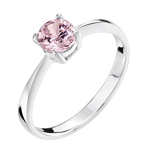 Pretty Pink-Anello Solitario con Zirconia cubica, colore: argento