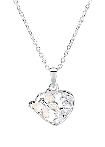 Accattivante ciondolo bianco a cuore, con designa farfalla