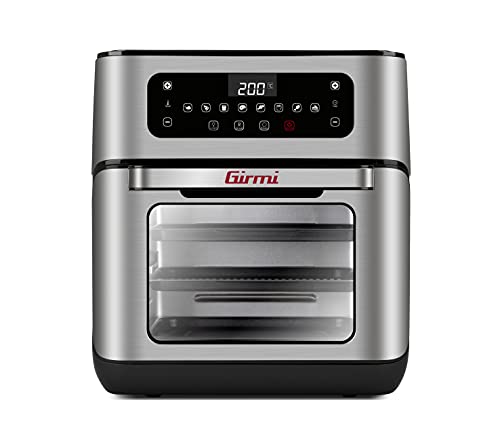 Girmi FG96 Forno Air Fryer "Genio", 1500W, 11 Litri, 9 Programmi, Girarrosto, Cestello per Patatine, Spiedini, Ricettario, Acciaio INOX