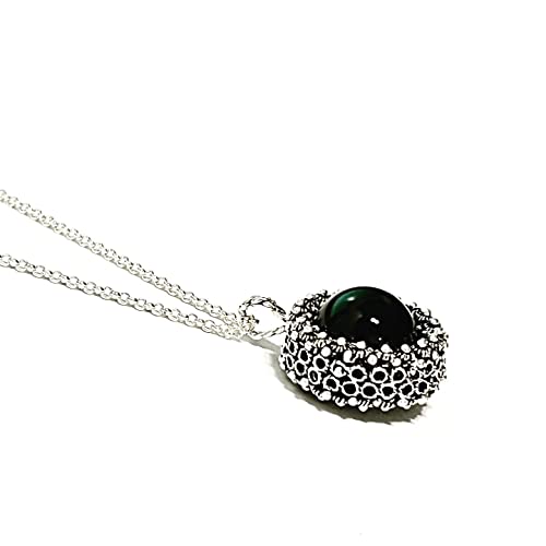 GIROCOLLO Su Coccu DOUBLE-FACE in Filigrana Sarda, Onice Nero e Corallo, Argento brunito, diametro 2,3 cm