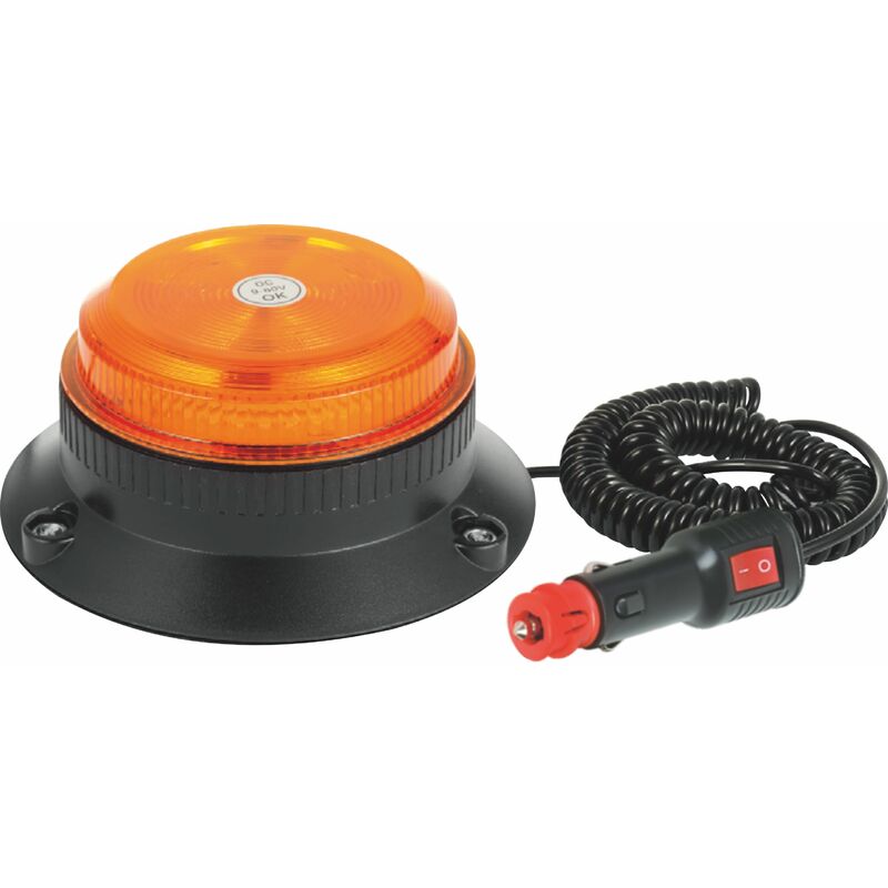 Lampeggiante a led base magnetica 12-30V, IP67, 30 LED. Quattro tipologie di flash: Flash singolo, Doppio flash, Quad flash, Mega flash. Assorbimento corrente 12V-24V: 1,6A, 0,8A. Picco di potenza: 20W. Temperatura di esercizio -30°C a 60°C Alimentazione Intensità di corrente (A): 1, 6-0, 8 Tensione nominale (V): 12-30 Dati principali Colore: Ambra Marca: Ama Tipo: girofaro a base magnetica Funzionalità Tipo luce: LED Informazioni d'uso Settori di applicazione: agricoltura Temperatura di esercizio: -30°C +60°C Sicurezza Grado protezione IP: IP67 Omologazioni: ECE R10, ECE R65, EMC, CE