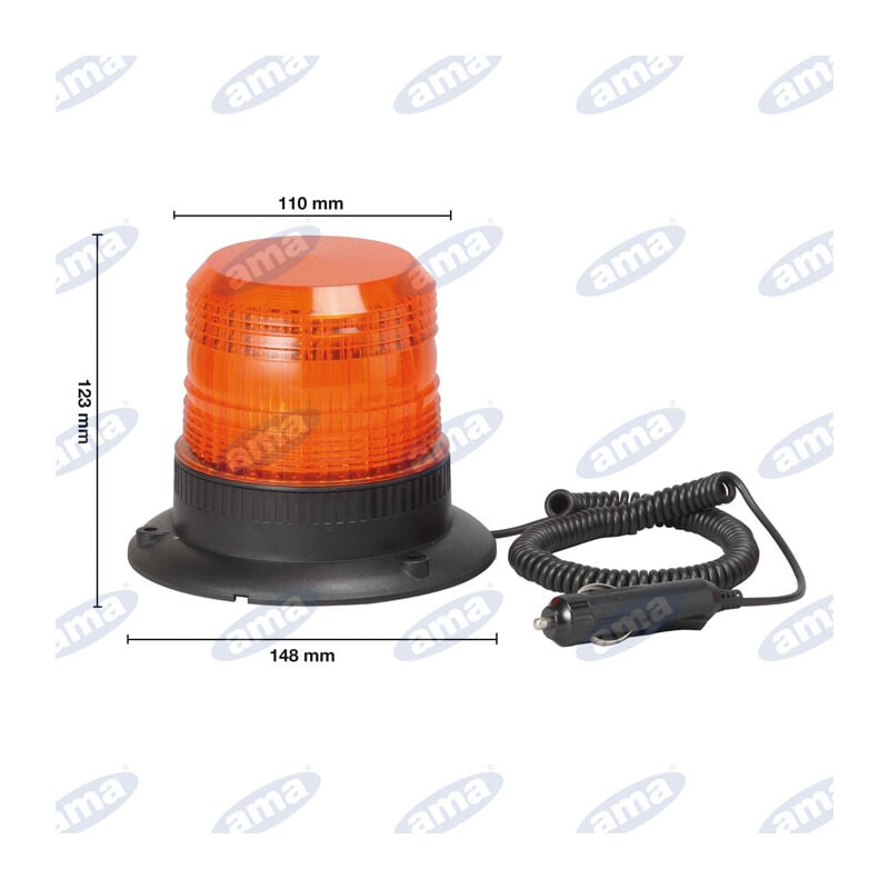 Girofaro a led a base magnetica 12-80 V 80 quad flash per minuto. Colore arancio. 140 mA per 12 V, 45 mA per 80 V, -20° C / +60°