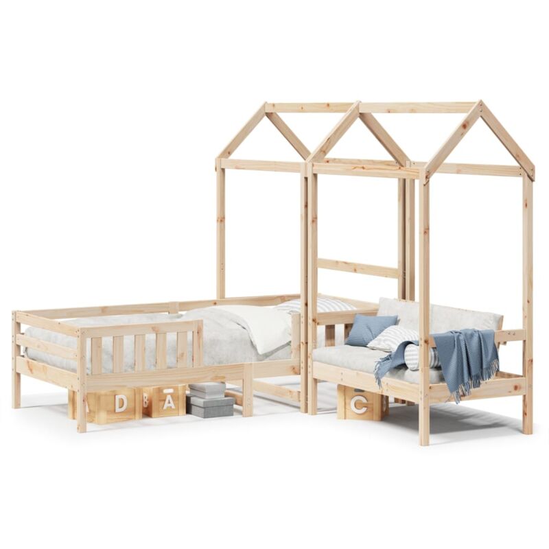 Aggiungete un tocco moderno alla vostra camera da letto con questo set di letto e panca! Costituisce un complemento pratico e decorativo al vostro ambiente. Legno massello di pino: Il legno massello di pino è un bellissimo materiale naturale. Il legno di pino ha le venature dritte e i nodi conferiscono al materiale il suo caratteristico aspetto rustico. Doghe in compensato: Le doghe in compensato conferiscono una buona distribuzione del peso, garantendo che il materasso rimanga in posizione ad ogni movimento del vostro corpo durante il sonno. Pratico schienale: The bench chair is designed with a backrest so that you can relax your body as per your comfort. Grande divertimento: Combinando il tetto con il letto del vostro bambino, potete creare un rifugio che offre al vostro piccolo un sacco di divertimento prima di andare a dormire. Questa aggiunta innovativa non sarà solo un punto focale elettrizzante, ma porterà anche meraviglia ed eccitazione nella stanza dei bambini. Design