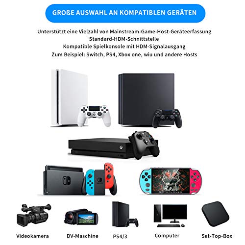 [Elevata compatibilità] La nostra scheda di gioco è facile da usare, non è necessario installare driver, è possibile utilizzare le funzioni integrate del software attuale. Supporta VLC, OBS, Twitch, Youtube, Potplayer e molti altri software per Windows, Mac OS, Android, ecc. Può aiutarti a registrare o trasferire video in tempo reale sul tuo dispositivo e supporta tutti i dispositivi che possono emettere un segnale video HDMI, come PS4, Xbox, Switch, ecc.