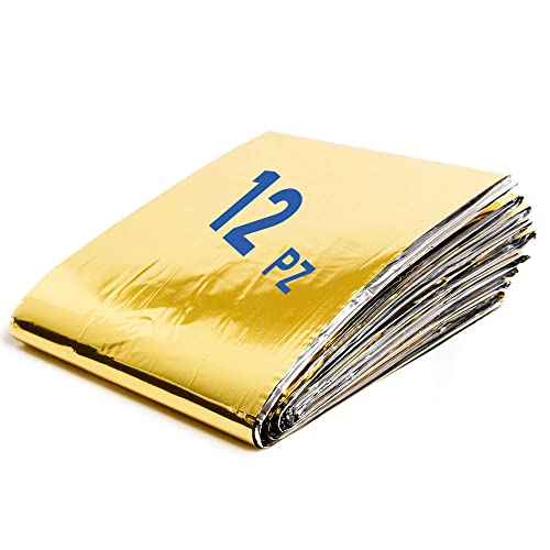 Gisinti Coperta Emergenza 12 Pezzi Telo Isotermico 210x160 Coperte Termiche Emergenza Coperta Sopravvivenza Protegge dal Caldo e dal Freddo | | Oro Argento Conf. 12 Pezzi