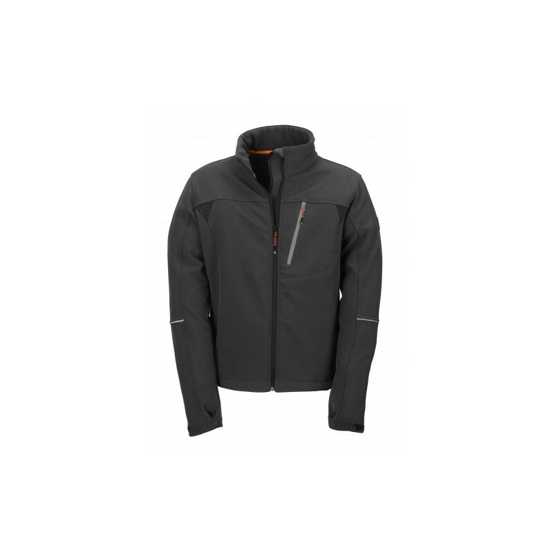 il lato interno della patta è garzato per maggior comfort, patta interna sotto la zip centrale, polsi regolabili con alamaro in gomma e velcro, coulisse al fondo per limitare la dispersione di calore, lato interno in fleece per il migliore isolamento termico, tessuto confortevole e leggermente elastico per favorire l'agio nei movimenti, profili reflex sui gomiti. tessuto principale: soft shell 2 strati. strato esterno: 92% poliestere 8% elastan. water repellent. strato interno: 100% poliestere fleece