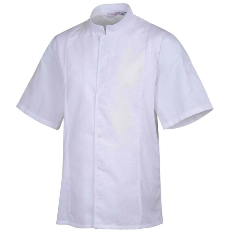 Caratteristiche: Collo da ufficiale + interno in spugna Giubbotto aderente in tessuto a nido d'ape Bottoni automatici nascosti Pannelli laterali in rete traspirante (tecnologia Cool Plus) Tasca portapenne sulla manica Spacchi posteriori Disponibile in bianco e nero Maniche corte Materiali: Poliestere/Cotone traspirante (da 150 g/m² a 160 g/m² a seconda dei colori)