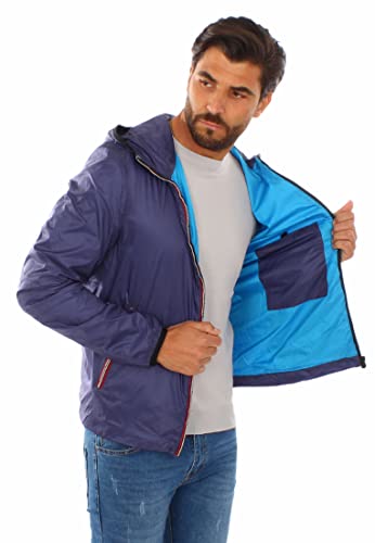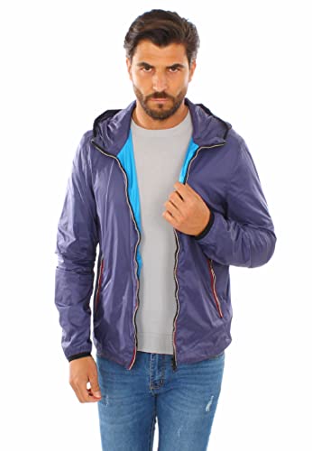 Giubbotto Uomo Estivo Leggero con Cappuccio Giacca a Vento Impermeabile (L, Blu)