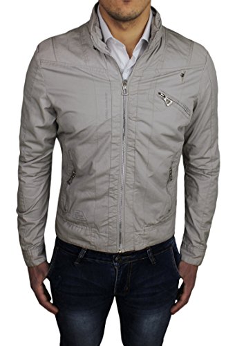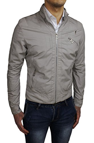 Giubbotto giacca uomo beige slim fit casual cotone giubbino parka moto trench (M)