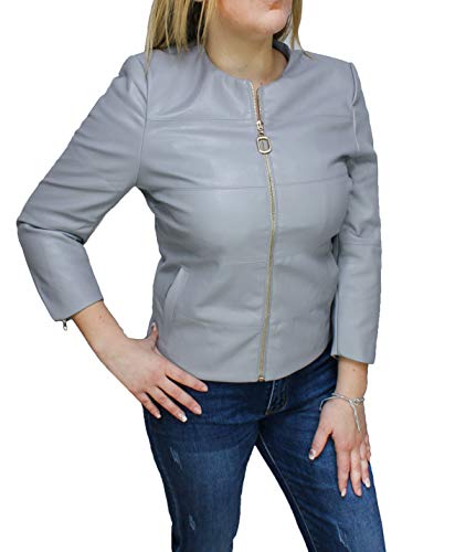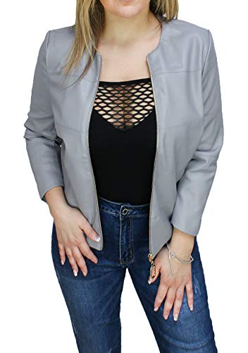 Giubbotto Giacca Donna Eco Pelle Corto Giubbino Chiodo Casual (M, A1 Grigio)