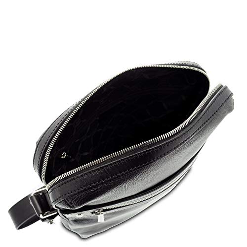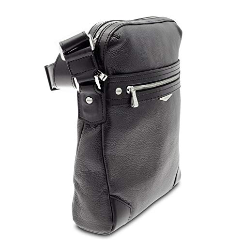GIUDI ® - Tracolla Uomo in pelle vitello martellato, vera pelle, Made in Italy, tracolla in pelle, porta tablet 10''. (Nero)
