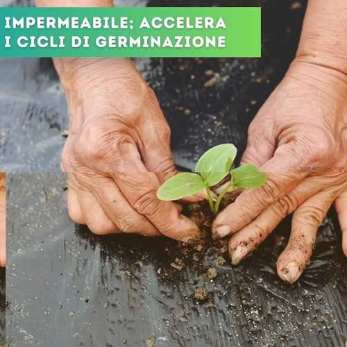 DI GIULIO SRL Telo Nero Pacciamatura 100 Metri x 1 Metro Larghezza con Fori Centrali Ogni 50 cm | Copertura Terreno Pacciamante Antierbacce | Bio Orto