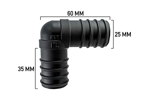 Giunti a gomito spinato da 25 mm a 25 mm per tubo da laghetto o da giardino.