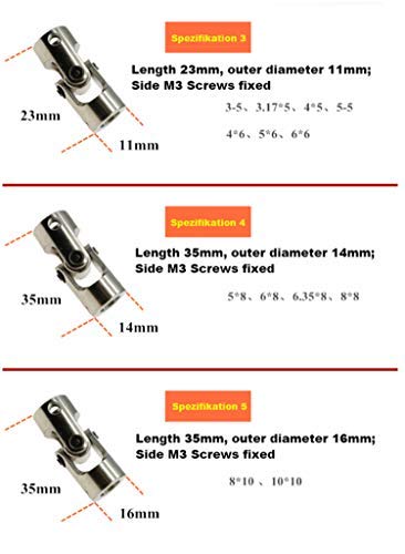 "4 mm-6 mm" significa "un diametro del foro dell'accoppiatore è di 4 mm, l'altro 6 mm" ("4 mm-6 mm" significa "un foro diameter of the coupler is 4 mm, l'altro è 6 mm") Descrizione del prodotto: ad esempio 4 x 5 mm, entrambi i lati hanno fori da 4 mm o 5 mm. È possibile inserire e fissare l'albero o il motore con le dimensioni e il diametro corrispondenti.