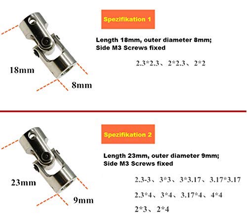 Giunto in metallo, giunto sterzo, giunto universale per auto e barche. Accessorio per modellini di auto e barche. Giunto a croce in metallo, 24 stili a scelta, giunto universale (6 x 8 mm)