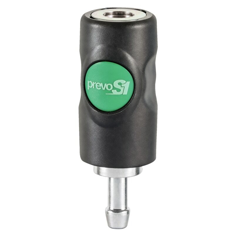 Raccordo di sicurezza a una mano NW 7.4 - versione a pulsante Raccordo LW 9 per tubo Ø 9 mm interno, ESI 071809 (adatto ai raccordi standard e ai nippli a pressione NW 7.4) Semplice Depressurizza e collega l'utensile o il sistema ad aria compressa con un solo semplice passaggio Connessione immediata e a risparmio di forza Compatibile con tutti gli attacchi standard europei (7,4 mm) Sicuro La connessione può essere rilasciata in tutta sicurezza Nessun rischio di frustate o disconnessioni accidentali Rilascio e disconnessione automatica della pressione Sicurezza testata, conforme a ISO 4414 e DIN EN 983 Potente giunto di sicurezza ESI 071809 Forma ergonomica e compatta per un utilizzo intuitivo e semplice Dimensioni compatte Flusso di fluidi ottimizzato Senza perdite di pressione Tenuta completa dell'accoppiamento Tenuta della filettatura grazie alla guarnizione piatta Accoppiamento per tubi flessibili Montaggio con morsetti a vite o ad orecchio Robusto Giunto realizzato in materiale