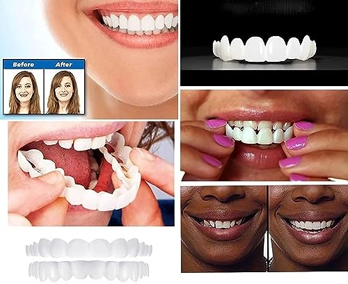 Design raffinato - I nostri denti cosmetici aiutano a nascondere i denti mancanti, piegati, macchiati e rotti. Libertà di sorridere, mangiare e bere mentre si indossa. Scatta sui denti delle faccette. Denti finti.