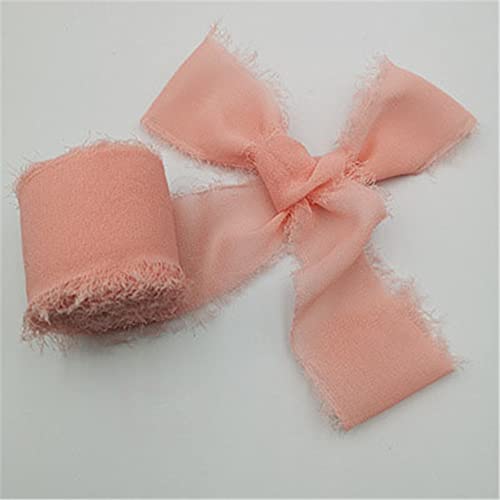 GIVBRO Nastro in chiffon con frange fatte a mano con bordi sfilacciati per inviti di nozze rustici, mazzi da regalo, 5 m
