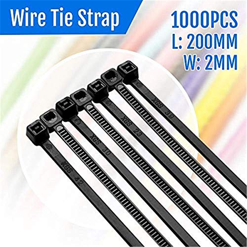 GIVBRO 1000 Pezzi Nero Cavo di plastica Fascetta Fissare Wrap 200 mm x 2 mm