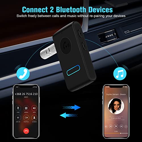 Giveet Ricevitore AUX Bluetooth per Auto, Wireless Bluetooth 5.0 per Cuffie Stereo/cablate di Casa con Controllo del Volume, Chiamate in Vivavoce, Doppia Connessione, 12H Durata della Batteria