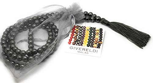 Givereldi Ematite collana di perle di mala 108 perle di 6 mm di larghezza - seduta schiena contro schiena più 1 grossa perla di guru - collana di preghiera, meditazione o nappa