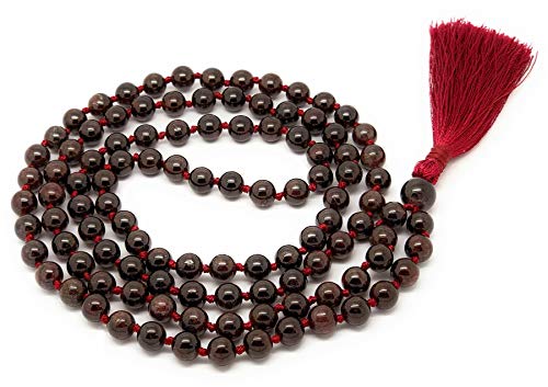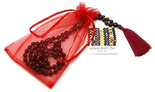 Givereldi Granato mala beads necklace bracelet 108 beads 7 mm wide - with knots in between plus 1 large guru bead - prayer, meditation or tassel necklace