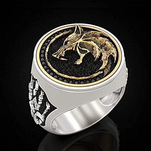 GJPSXTY Anello da Uomo in Acciaio Inossidabile con Testa di Lupo Vichingo Uomini Anelli Dito Anello Vichingo Mitologia Norrena Odin Fenrir Anello Totem Animale Celtico 10# Gold