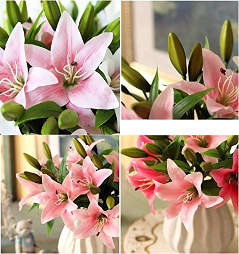 GKONGU Fiori Artificiali Giglio, 4 Pezzi Realista Giglio Mazzi di fiori dall' Aspetto Naturale con 3 Gemme di fiori,Ideale per la casa, il giardino, la decorazione di nozze-Rosa