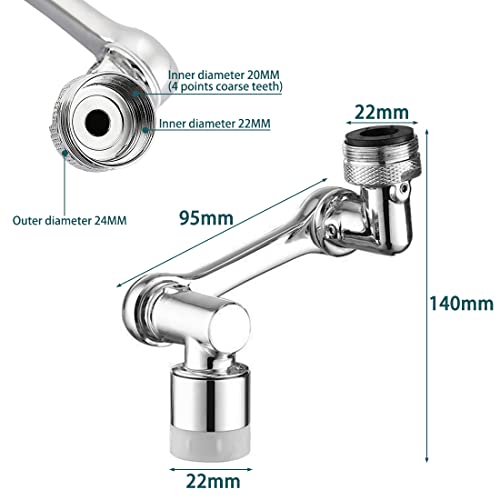 Compatibilità: il rubinetto di prolunga multifunzione orientabile è compatibile con la maggior parte dei rubinetti e può essere installato direttamente su rubinetti con filettatura interna/esterna da 20/22/24 mm
