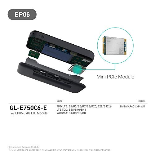 GL.iNet GL-E750 (MUDI) 4G LTE OpenWrt VPN Router, 128GB Max MicroSD, EMEA (EP06-E Module Installed), 7000mAh Batteria, OpenVPN, WireGuard, Tor, Router Programmabile