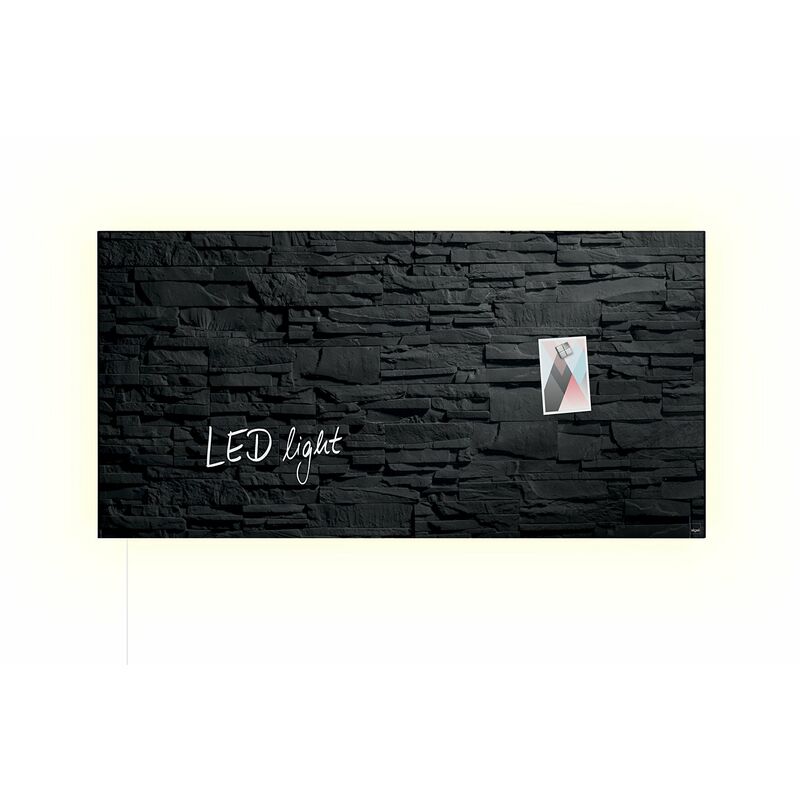Lavagna magnetica di vetro artverum LED light - stiloso complemento d'arredo, texture ardesia, con luce LED avvincente e suggestiva. incl. diodi, striscia LED fissata in un profilo d'alluminio sul retro della lavagna magnetica di vetro, cavo bianco (2 m) con interruttore e connettore Euro. In vetro di sicurezza: Tempered Glas d'alta qualità (tipo ESG, EN 12150-1), prodotto omologato TÜV e GS, fondo calamitabile e scrivibile. Striscia LED, luce bianco caldo, durata di vita: circa 25.000 h, flusso luminoso: 795 lm, potenza 12,7 W incl. tre magneti SuperDym extra strong, attacchi e dima di foratura