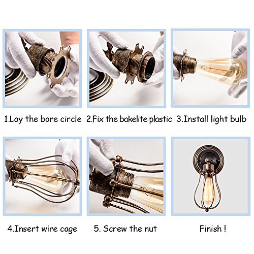 ✤ DESIGN: questa applique da parete vintage industriale può regolare liberamente l'angolazione, in modo da realizzare le diverse prospettive dell'interno in base alle esigenze di illuminazione. Il corpo illuminante è collegato tramite filettatura, facilità di installazione e durata.