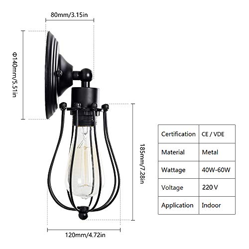 GLADFRESIT Applique Vintage Applique Industrial Regolabile in Metallo Lampade Da Parete Interno Lampade Rustiche E27 per Bar Caffè Hotel Ristorante Loft e Cucina 2 piacks (Nero)