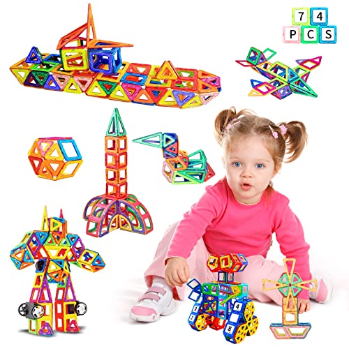 GLAITC Blocchi Magnetici per Bambini 74 pezzi Blocchi Magnetici Ragazzi Ragazze Piastrelle da Costruzione Educativi Giocattoli Stelo per 3+ Anni Bambini Regalo di Compleanno di Natale per Bambini