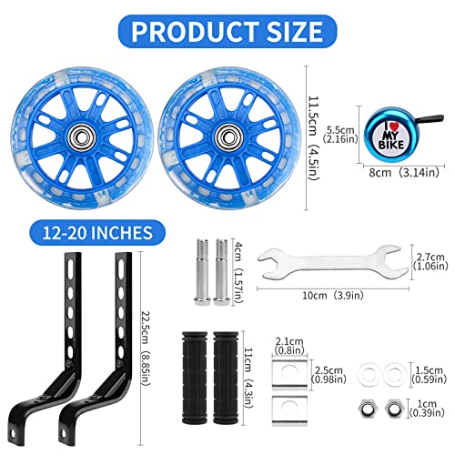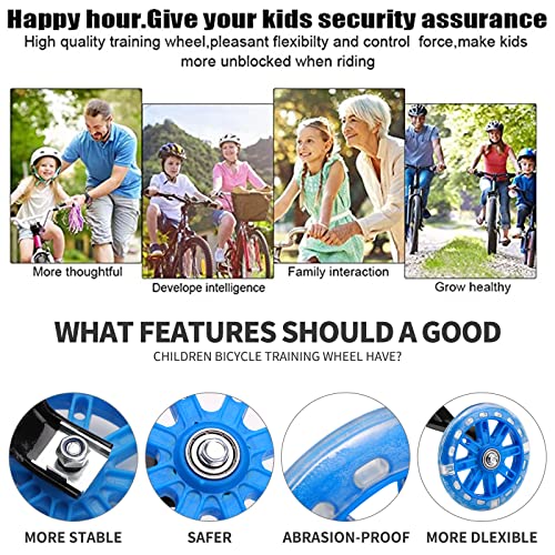 GLAITC Ruote per Bicicletta Bambini, Ruote Universali di Supporto Flash Rotelle Stabilizzatori Rotelle Regolabili Ruota Ausiliaria della Bicicletta per Bici per 12 14 16 18 20 Pollici Bicicletta Blue