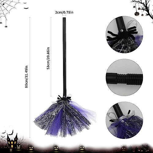GLAITC Scopa della Strega di Halloween, 80cm Viola Scopa di Halloween Prop Costume da Strega Malvagia Accessori Cosplay per Halloween Decorazioni per Feste per Bambini, Rimovibile