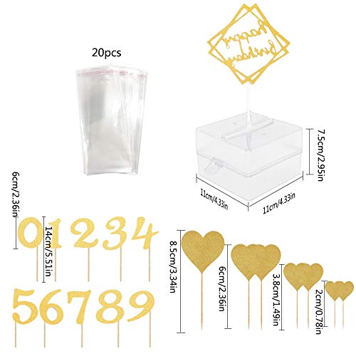 ❤ Pacchetto valore: il pacchetto contiene 1 x salvadanaio Happy Birthday (20 x sacchetti, 1 x carta per torta, 5 x colla, 1 x stick, 1 x scatola), 7 x toppers per torta con cuore glitterato e 0-9 inserto per torta.