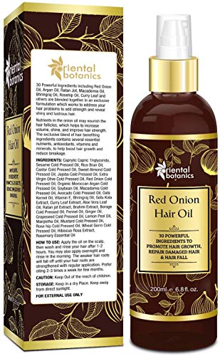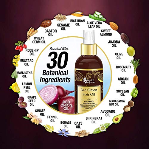 Glamorous Hub Oriental Botanics Red Onion Hair Oil 200ml With Argan Oil Castor Bhringraj Almond 30 Oils & Extracts Ripara i capelli danneggiati (senza olio minerale)