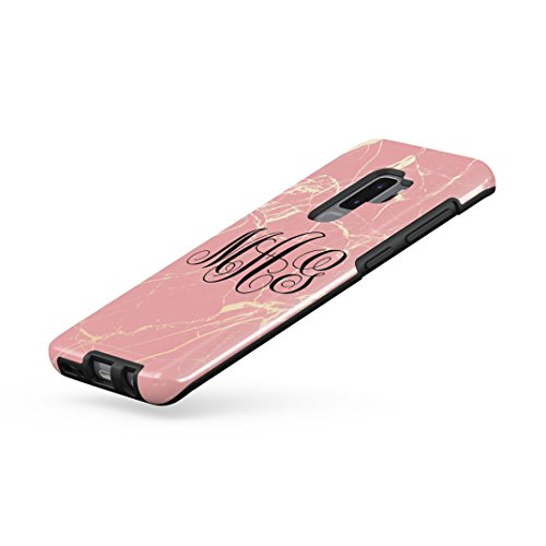 Glamorous Rosa Personal Customized Marmo Custom Text Name Monogram Iniziale Cover Compatible with Samsung Galaxy S9 Plus 2 Pezzi Doppio Strato PC + TPU Custodia Protettiva Robusta Case