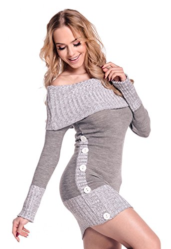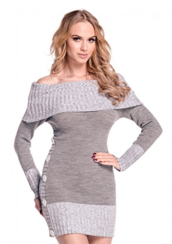 Glamour Empire. Donna Vestito Maglia Pullover Scollo Bardot. Lungo Maglione. 913 (Grigio, One Size IT 42/44/46, One Size)