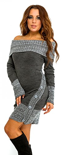 Glamour Empire. Donna Vestito Maglia Pullover Scollo Bardot. Lungo Maglione. 415 (Grafite, 42/44)
