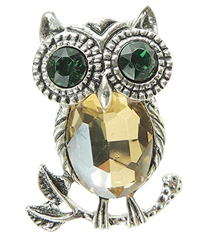 Glamour Girlz - Spilla da donna con strass e gufo su un ramo di uccelli, con occhi verdi