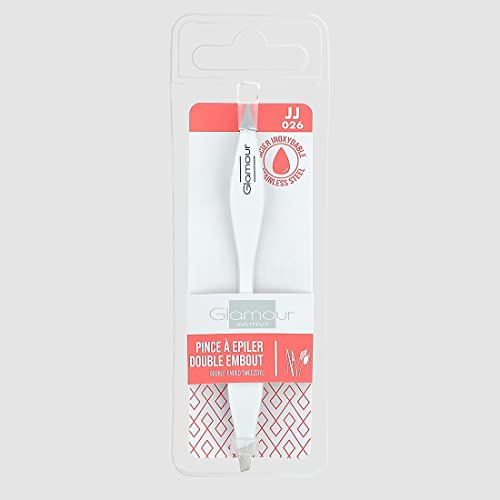 GLAMOUR INSTITUT - Pinzetta per sopracciglia a doppia punta, con custodia