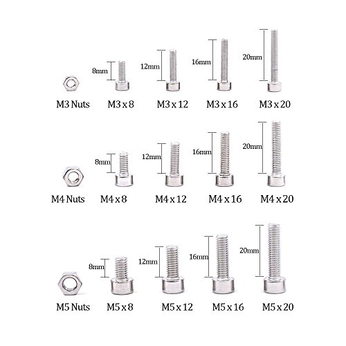 Glarks 510Pcs M3 M4 M5 304 Viti a testa esagonale in acciaio inox con dadi Kit assortimento