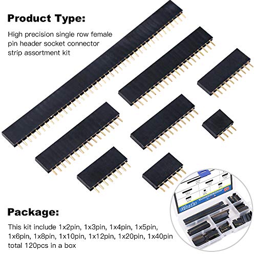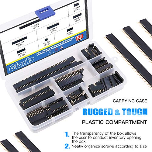 Glarks 120 pz 2,54 mm dritto singola fila PCB Board femmina pin header Socket Connector Strip Assortimento Kit per Arduino Prototype Shield(fila singola)