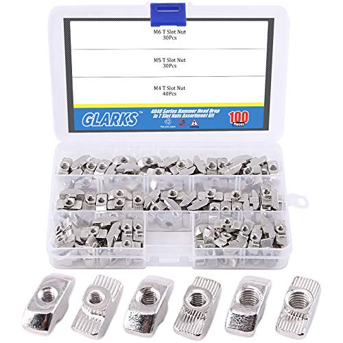 Glarks - Set di 100 dadi a T europei serie 4040, M4 M5 M6, testa a testa martello a T per profilo in alluminio serie 40, in acciaio al carbonio nichelato